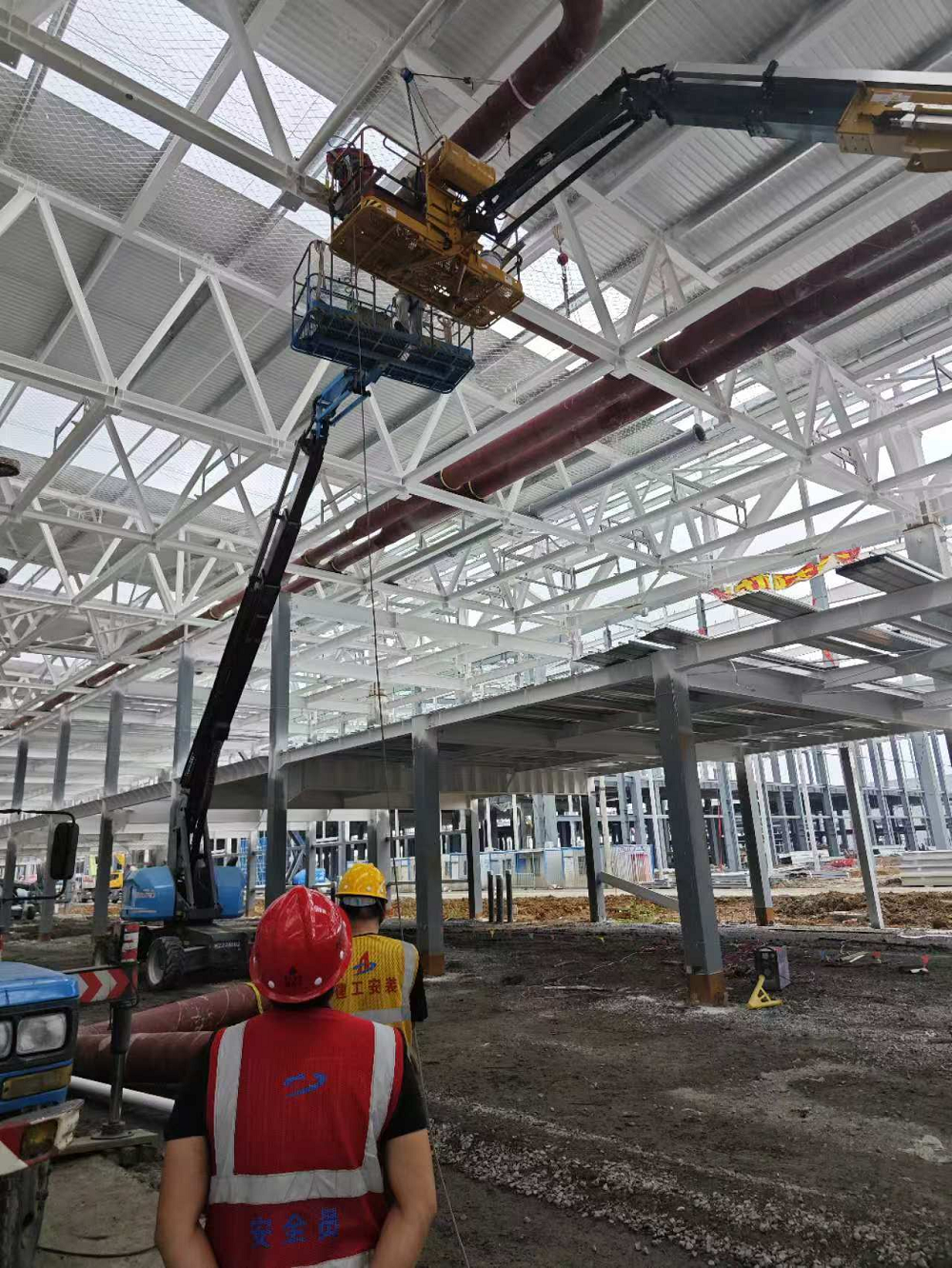 “優(yōu)方案”,項目部根據(jù)現(xiàn)場實際情況提前優(yōu)化吊裝施工方案,加快冷凍水管道安裝速度;并根據(jù)現(xiàn)場吊裝孔洞,轉(zhuǎn)變思路,定制8米螺旋焊管,大大加快了吊裝施工進(jìn)度。