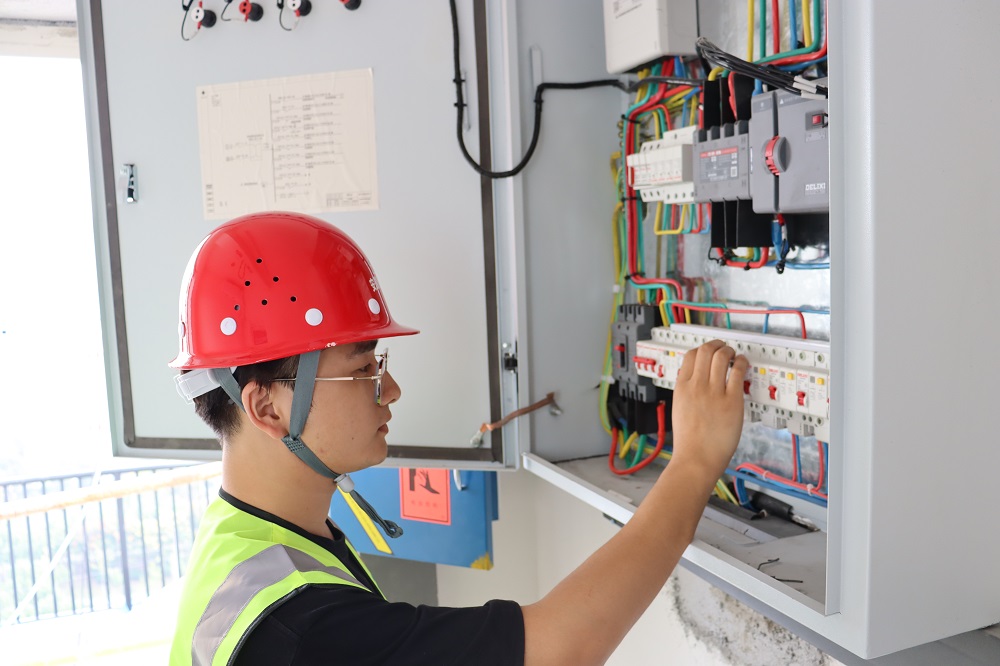 中國蚌埠傳感谷(寧波蚌埠微電子產(chǎn)業(yè)園)項目,技術(shù)員,鄭繼昊,正在檢查電梯控制柜操作系統(tǒng)。奮進正當時,我為祖國建設出力,以實際行動建設精品工程。我在項目堅守,我為祖國慶生。