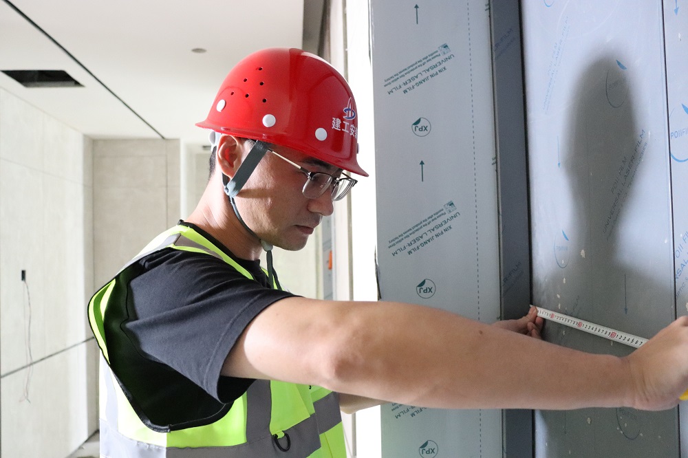 肥西縣鄉(xiāng)村文化旅游配套提升項目,技術(shù)負責人,湯楊,正在核查廳門安裝精度。丈量每一寸,精準每一毫,奮楫篤行,臻于至善,一路走來淌下的汗水,是對工作的熱愛與堅守。我在項目堅守,我為祖國慶生。