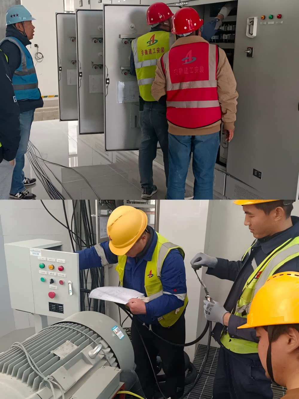 圖為合肥七水廠三期安裝工程項目敷設(shè)電纜、配電柜、設(shè)備接線