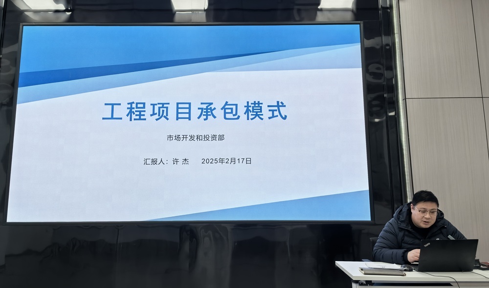 許杰聚焦工程項目承包模式,深入淺出地解讀了十種常見項目承包模式,并結合公司實際案例,從不同角度分析了每種模式的特點和適用場景,就集團市場開發有關工作部署進行宣貫。