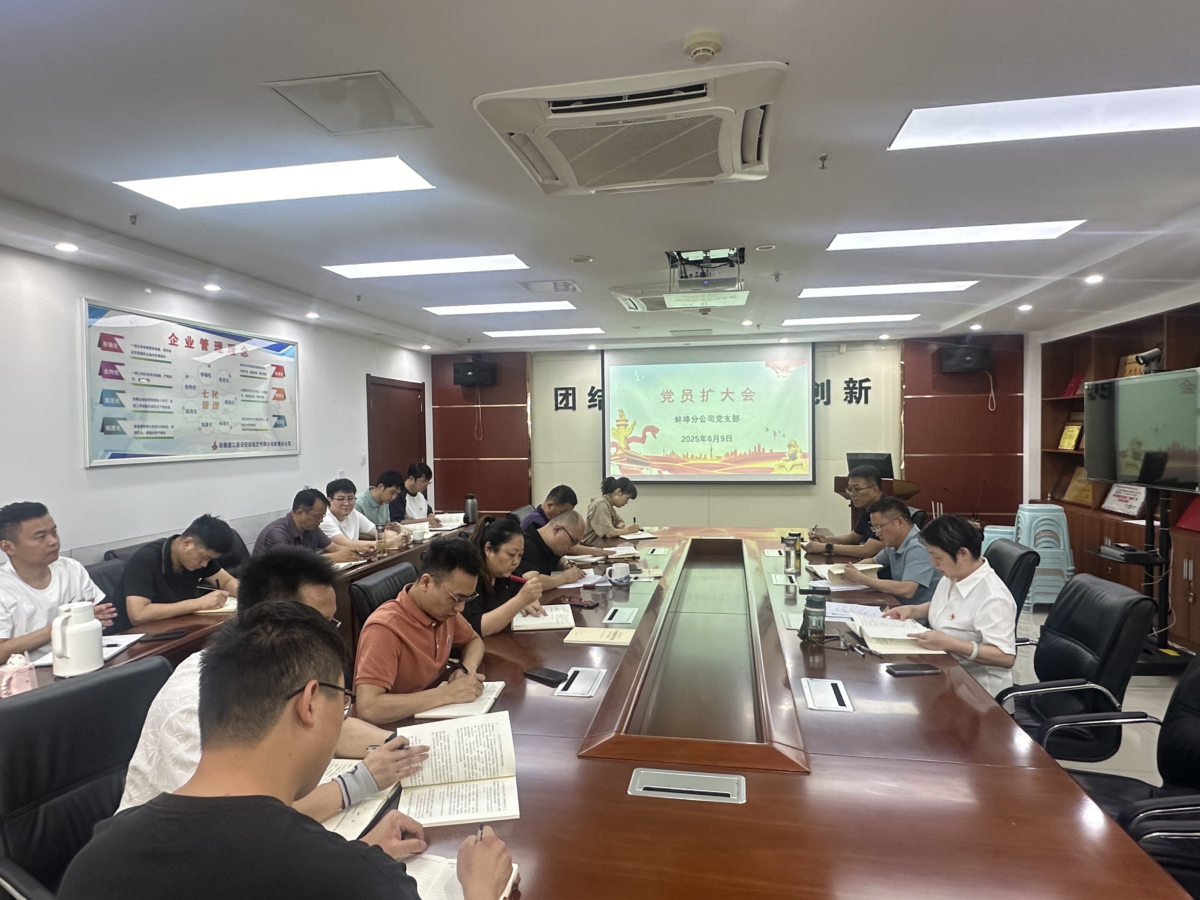 6月9日下午,建工安裝蚌埠分公司黨支部召開深入貫徹中央八項規定精神學習教育推進會,分公司領導班子、各部門負責人、在蚌項目主要負責人及支部黨員參加會議。會議由支部副書記許素寒主持。