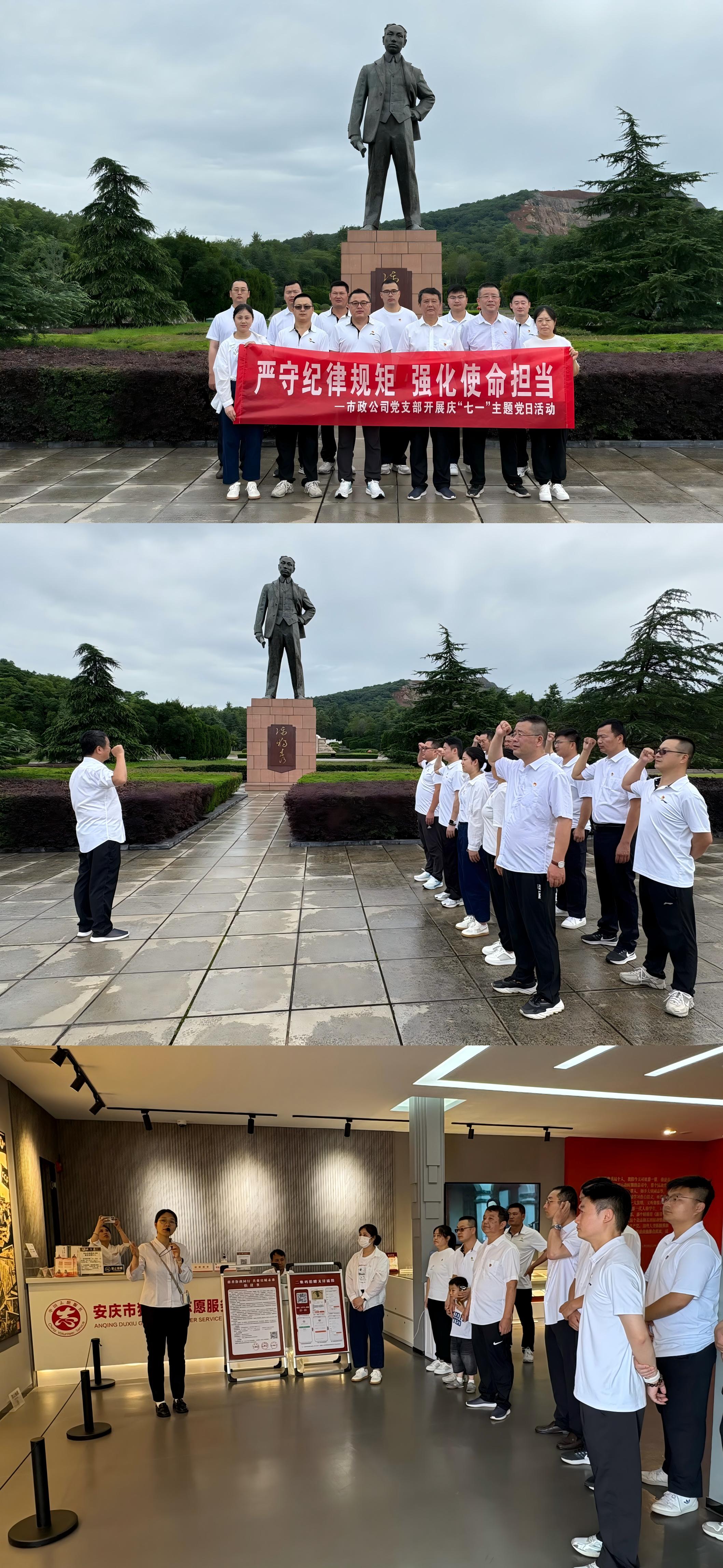 6月28日,建工安裝市政公司黨支部組織全體黨員干部赴安慶市獨秀園愛國主義教育基地開展“嚴守紀律規矩 強化使命擔當”主題黨日活動。
