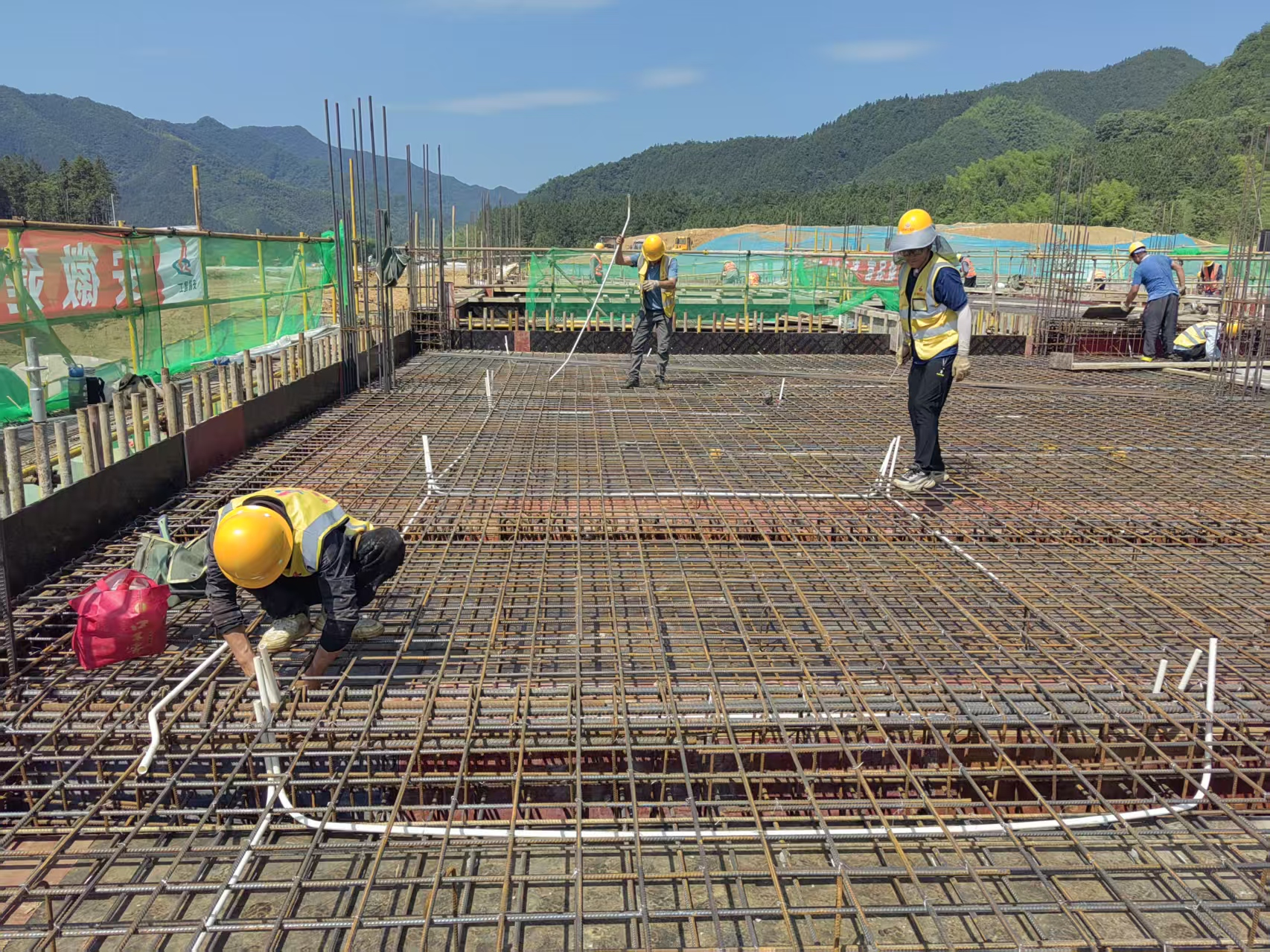 工人埋頭苦干進行水電線管預埋