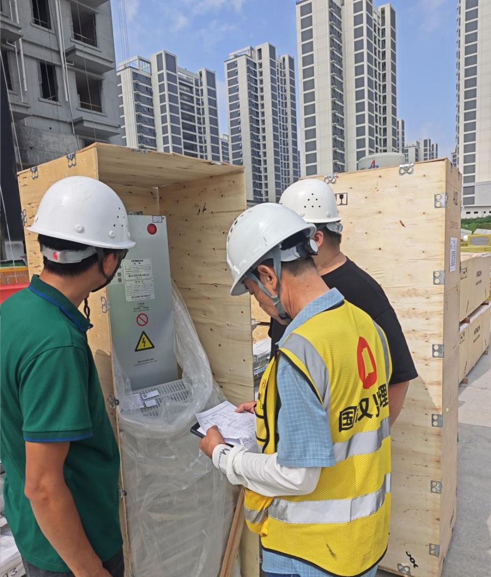 長豐縣雙墩鎮(zhèn)紫桐苑項(xiàng)目項(xiàng)目管理人員正在對(duì)電梯開箱核對(duì)數(shù)據(jù)參數(shù)