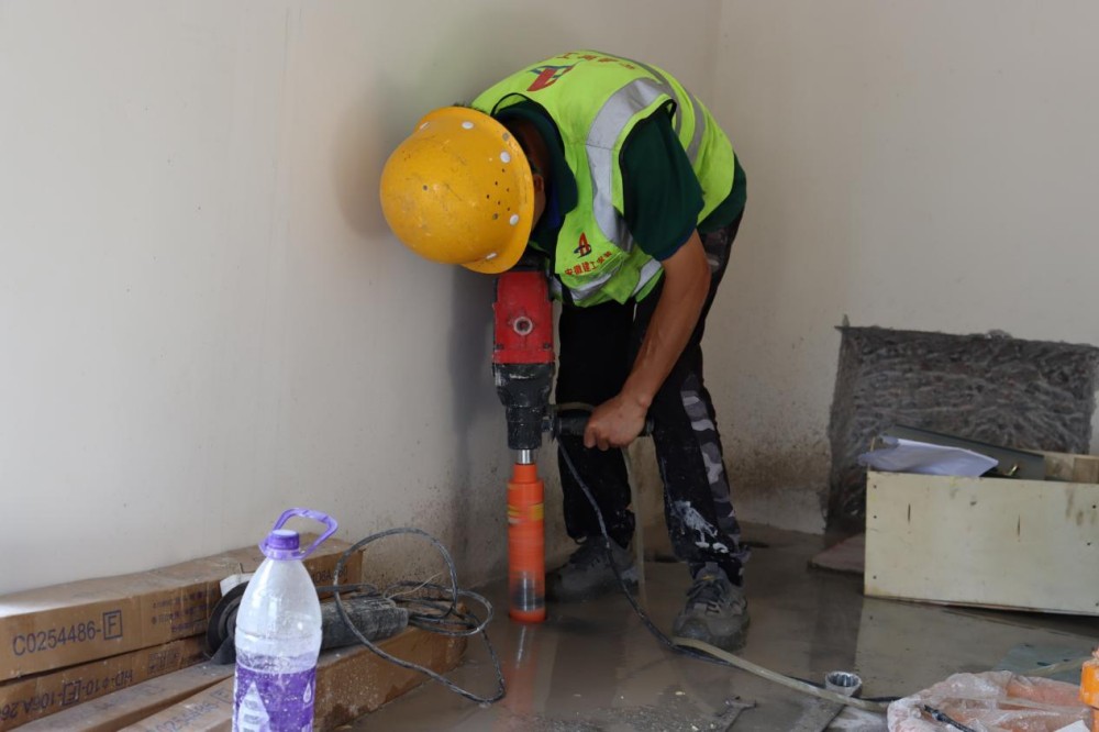 肥西縣城鄉(xiāng)一體化發(fā)展花崗項(xiàng)目施工人員正在對(duì)機(jī)房地面進(jìn)行孔洞開鑿
