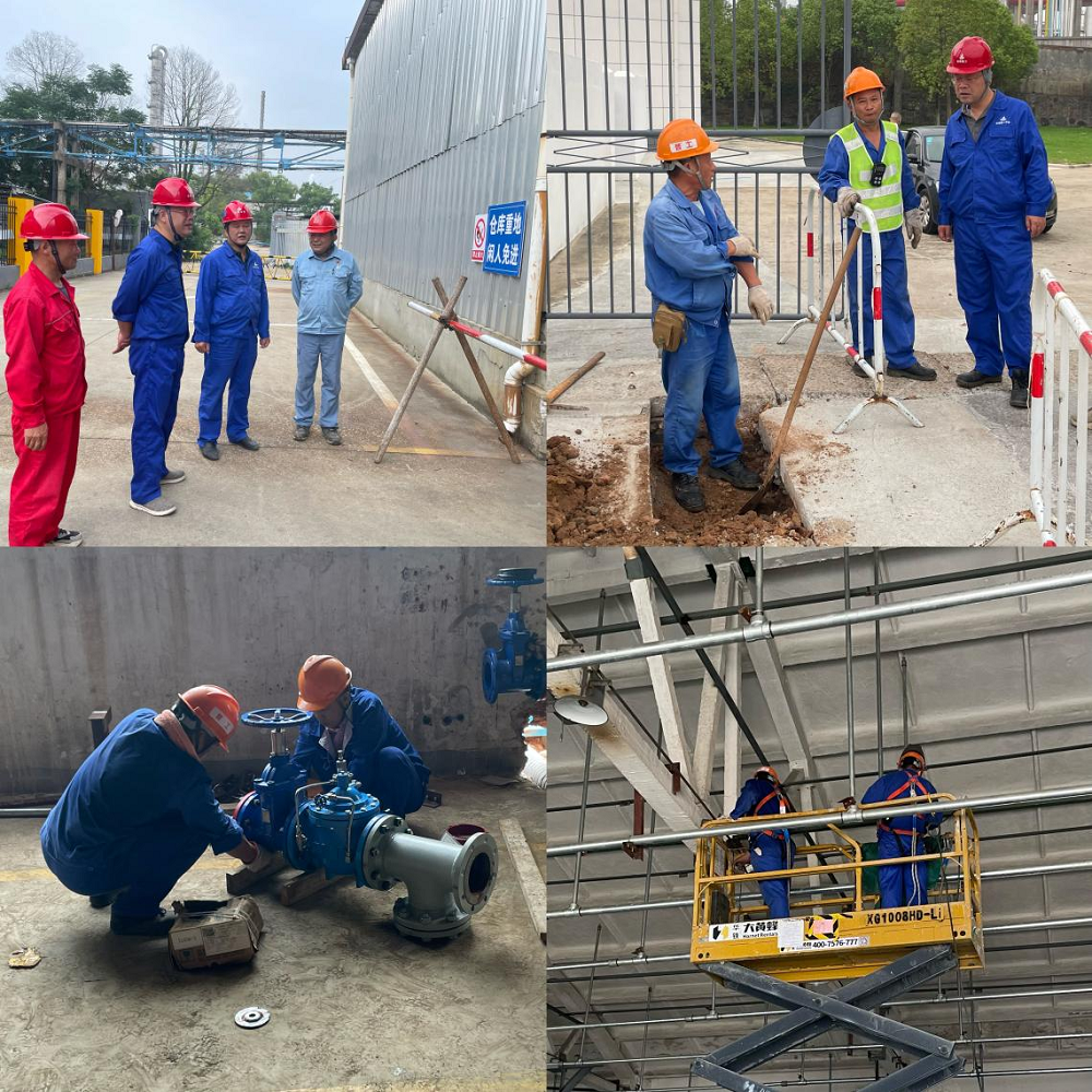 抵達安慶石化腈綸短纖成品庫及腈綸總降消防設施隱患整改倉庫區域,“倉庫重地 閑人免進” 的標識醒目懸掛,現場管理氛圍嚴謹。在此區域,市政公司領導與項目人員展開交流,圍繞項目管理機制、安全防護落實等關鍵事項進行詳細詢問,深入了解現場運營細節,在倉庫內部,施工人員正開展作業。在設備安裝區域,工人專注投入各類閥門及關鍵部件的預制工作,每一個操作步驟均嚴謹細致,嚴格遵循技術要求。而在高空作業區域,施工人員依托升降平臺規范作業,各項安全措施落實到位,充分彰顯出良好的施工規范意識與安全生產意識。